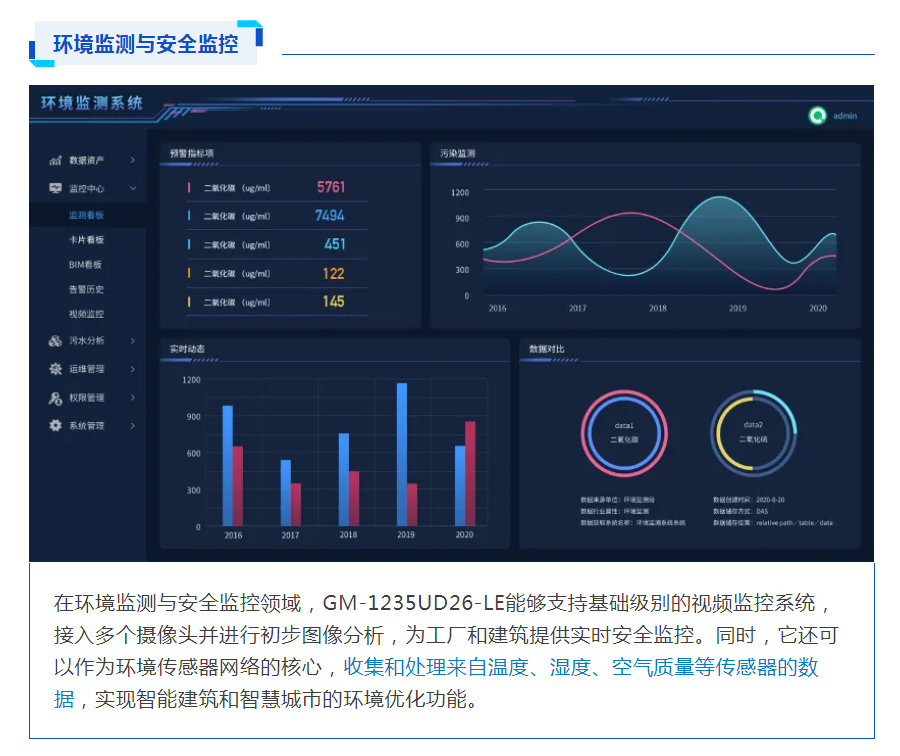 在存儲方面,GM-1235UD26-LE 提供了 1×M.2 Key-M 2280 接口,支持 SATA/PCI-E(PCIEX4)協議自適應,以及 1×SATA3.0 接口。多樣化的存儲接口設計,使得用戶可以根據實際需求選擇合適的存儲設備,無論是高速的固態硬盤還是大容量的傳統硬盤,都能輕松適配,確保數據存儲的高效性和可靠性。