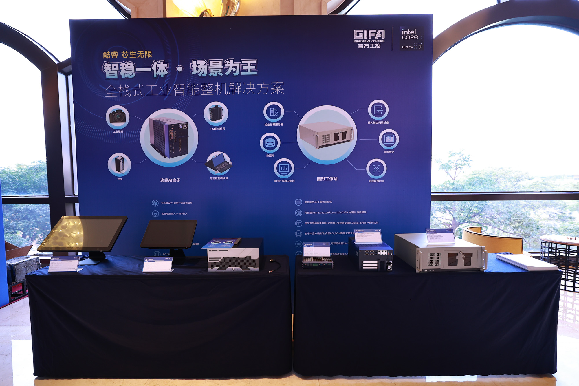 整機展臺則展示了面向工業自動化場景的最新一代高性能工控機產品。展品涵蓋支持多路擴展、邊緣AI推理、寬溫穩定運行的嵌入式整機與模塊化系統,可廣泛應用于智能產線、機器視覺、設備監控、運動控制等關鍵環節,助力制造業實現柔性化、數字化與智能化升級。