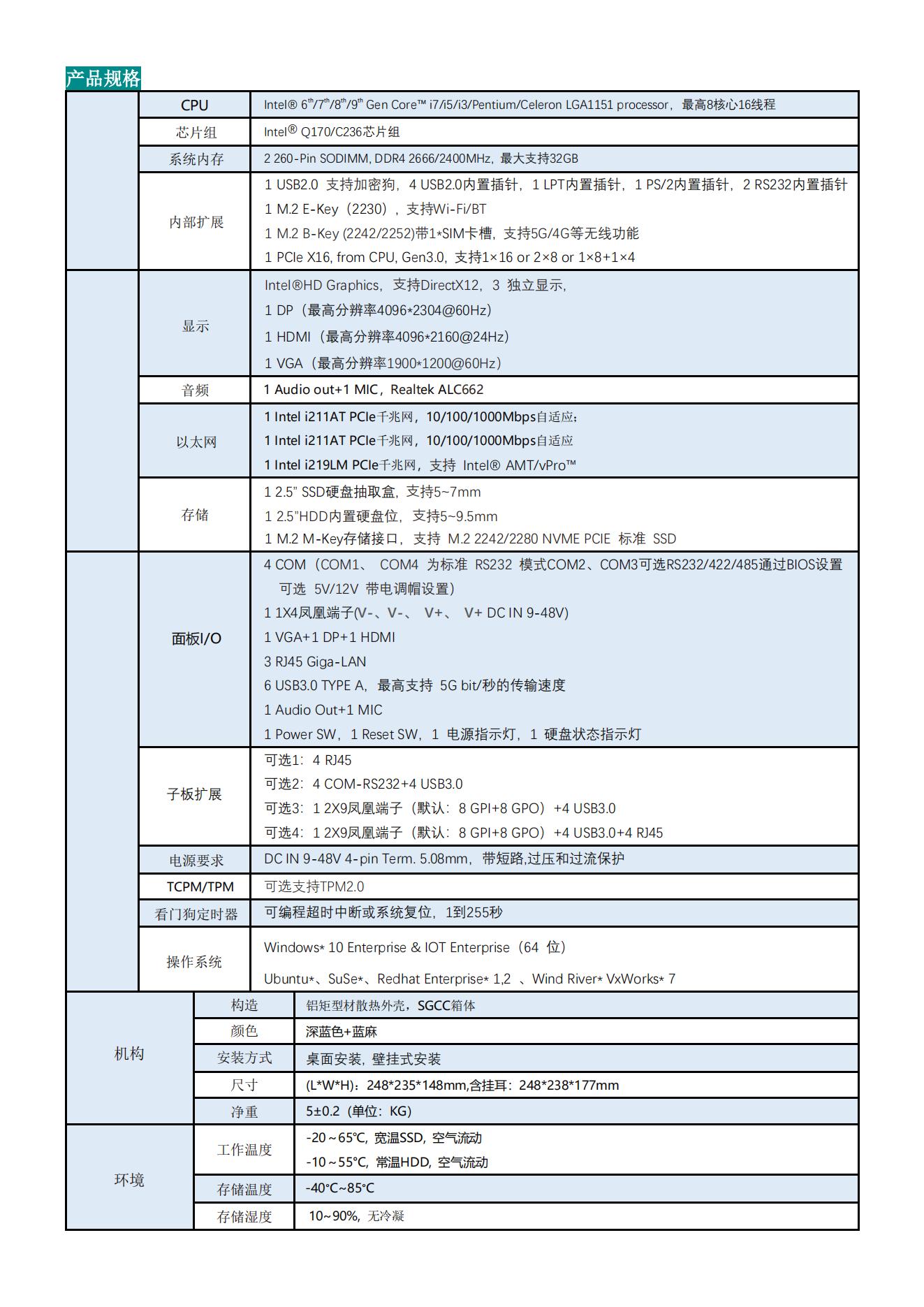 ◆采用Intel Skylake-S Q170/C236芯片組